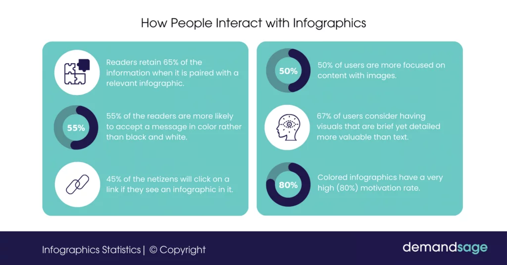 Infographics combine visuals + information to tell stories more effectively than text alone. Here’s why you should use them:
