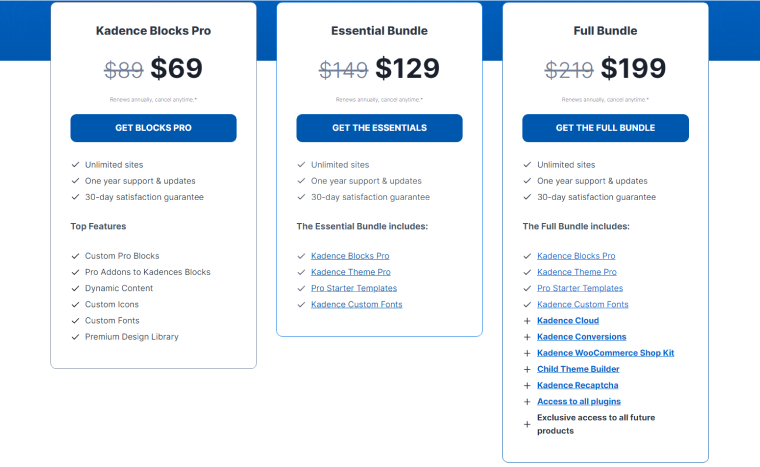 Note: Kadence Pro includes Kadence Blocks Pro and other plugins in the bundle.