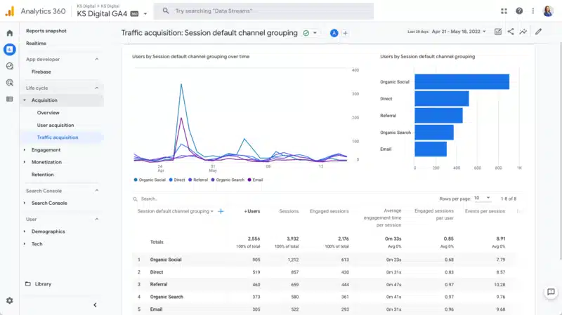 Once set up, your Google Analytics dashboard might seem overwhelming. But here’s a simple breakdown of what matters most for beginners: